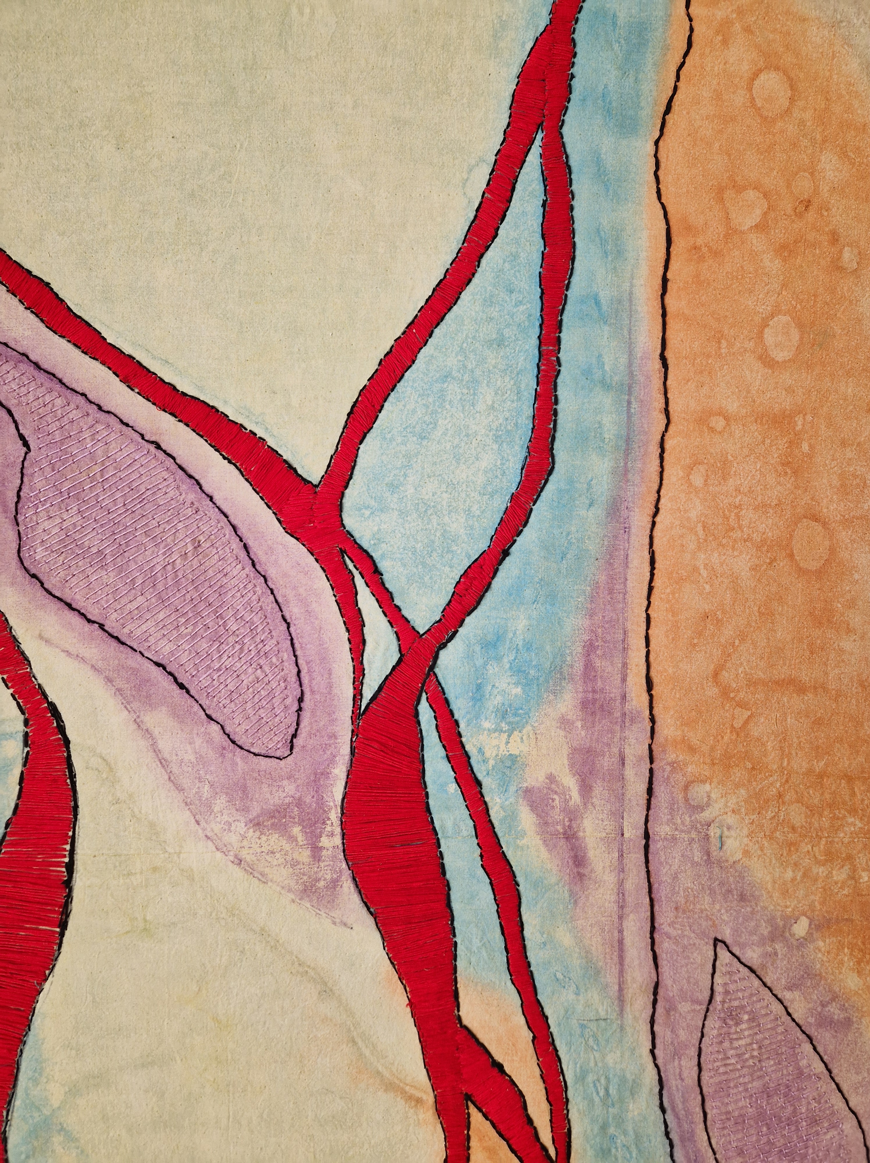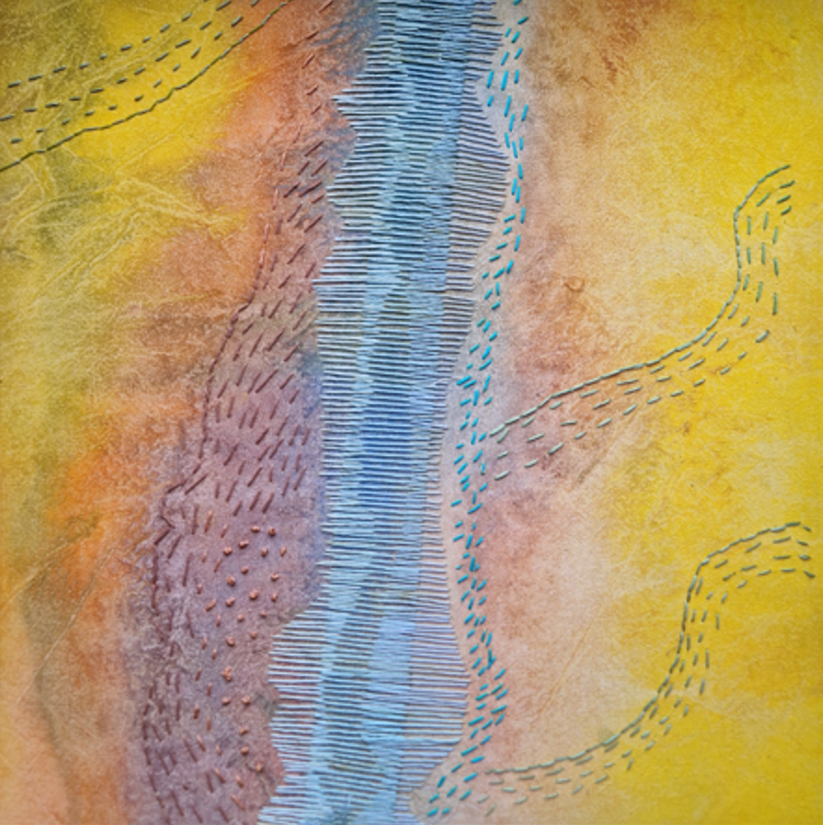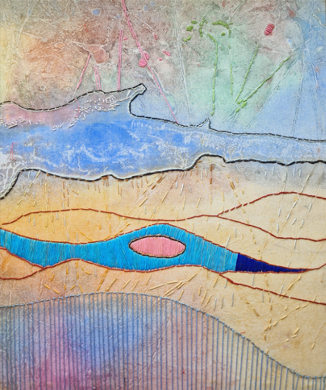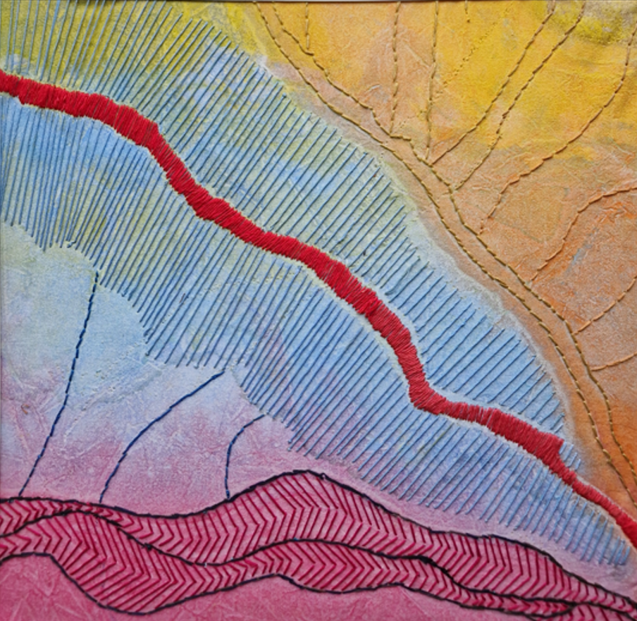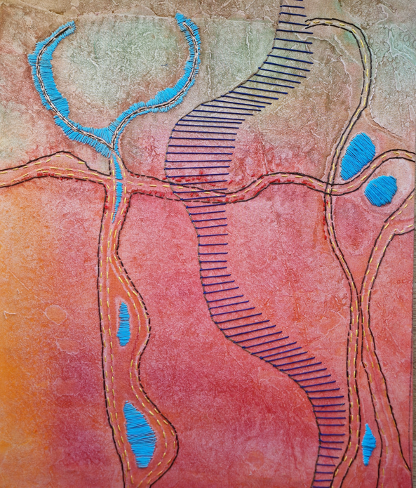 I have embraced some of these ancient techniques by creating paintings using earth pigments on fabrics. I subsequently embellish these fabric designs with hand stitching.